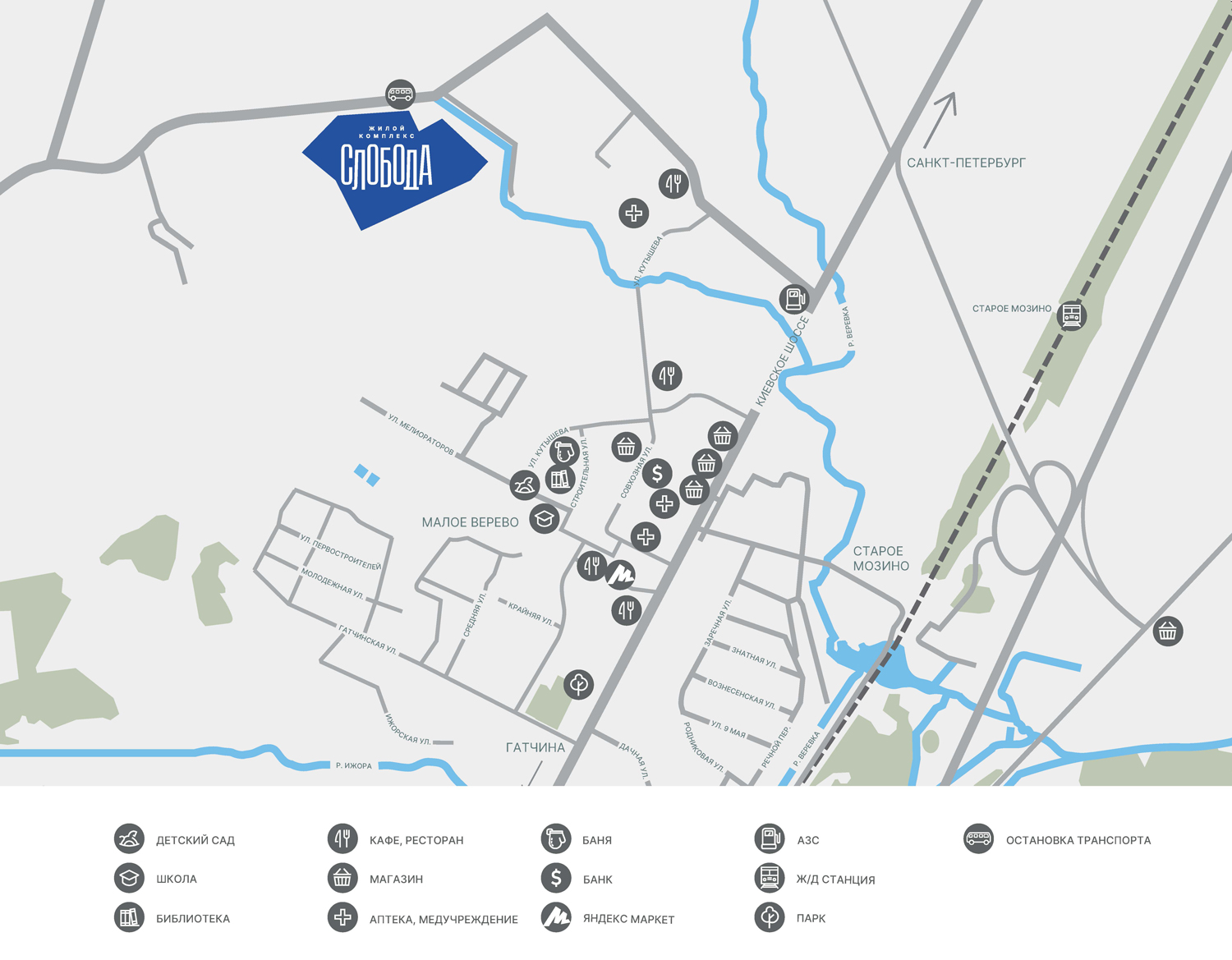 СЛОБОДА ДЕВЕЛОПМЕНТ открыла продажи в малоэтажном жилом квартале «Слобода», который строится в деревне Малое Верево Гатчинского района Ленинградской области. Преимуществом комплекса является расположение в одной из самых экологически чистых локаций Ленинградской области, при этом с отличной транспортной доступностью до Петербурга. Рядом находится железнодорожная станция «Старое Мозино», а за 25 минут на машине можно доехать до станции метро «Московская».