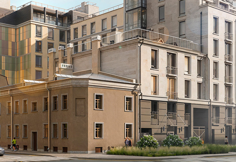 «Дуалист» органично вписывается в окружающую застройку: композиция выдержана в стилистике традиционной петербургской архитектуры. Авторы проекта соблюли четкие пропорции, трехчастное деление и выбрали палитру благородных натуральных оттенков для отделки фасадов.